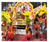 Sinulog is a dance ritual in honor of the miraculous image of the Santo Niño. The dance moves two steps forward and one step backward to the sound of the drums. This resembles the current (Sulog) of what was then known as Cebu's Pahina River. Thus, in Cebuano, they say it's Sinulog. |